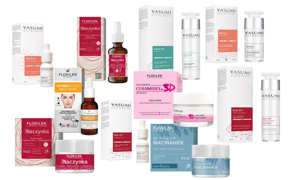 Trzecią grupą problemów skórnych po lecie są zaburzenia naczyniowe – przede wszystkim nasilone zaczerwienienie i kruchość naczyń krwionośnych. Skóra naczynkowa, delikatna z natury, jest szczególnie wrażliwa na działanie słońca i nagłych zmian temperatury. Promieniowanie UV przyczynia się do degradacji kolagenu i elastyny w ścianach naczyń włosowatych, co prowadzi do ich trwałego rozszerzania się. Często dochodzi również do nasilenia rumienia, pieczenia, a nawet stanów zapalnych w przebiegu trądziku różowatego. W pielęgnacji cery naczynkowej po lecie niezwykle ważne jest działanie wzmacniające i uszczelniające naczynia. Substancje takie jak rutyna, wyciąg z kasztanowca, arniki lub miłorzębu działają ochronnie na naczynia włosowate, zmniejszając ich przepuszczalność i ograniczając mikrozapalne reakcje. Warto również wprowadzić do pielęgnacji witaminę C, która wspomaga proces regeneracji naczyń i poprawia koloryt cery.
