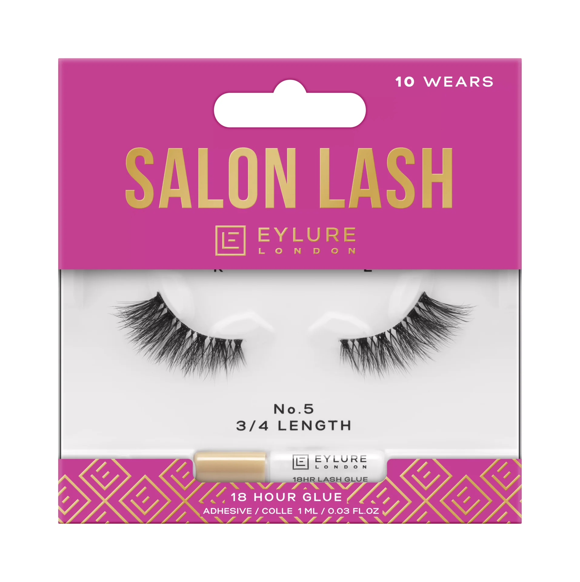 • No.5 ¾ Length – rzęsy o lekko wyciągniętym kształcie, które optycznie unoszą zewnętrzny kącik oka. Delikatne, warstwowe włókna nadają subtelną „wispy” teksturę, a przezroczysty pasek zapewnia wygodę.