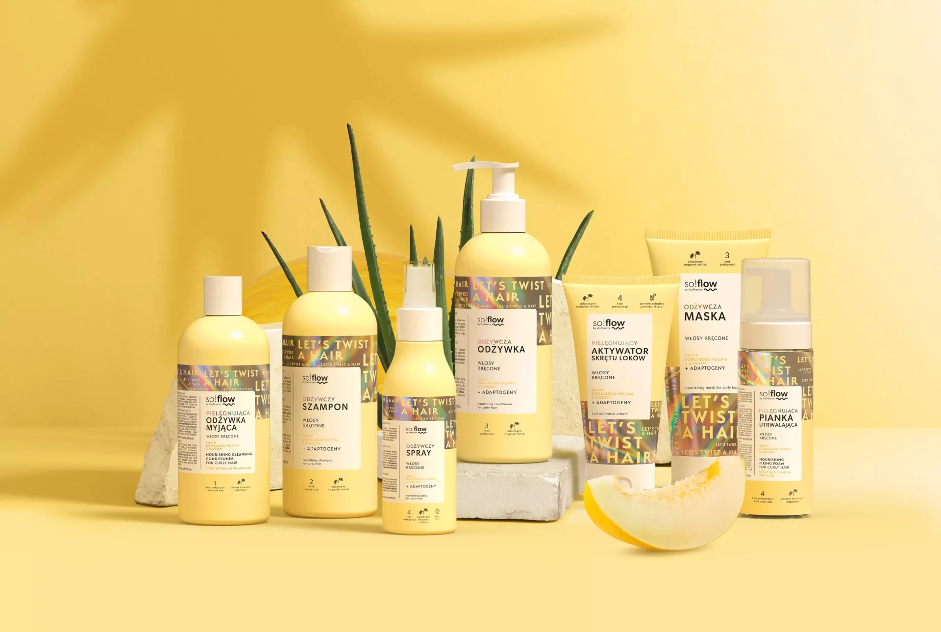 Linia o zapachu dojrzałego melona z aloesem składa się z kosmetyków opartych na działaniu ceramidów yuzu, wegańskiej keratyny oraz adaptogenu – traganka chińskiego. Do dotychczasowej gamy produktów dedykowanych dla włosów kręconych, dołączyły właśnie dwie nowości: