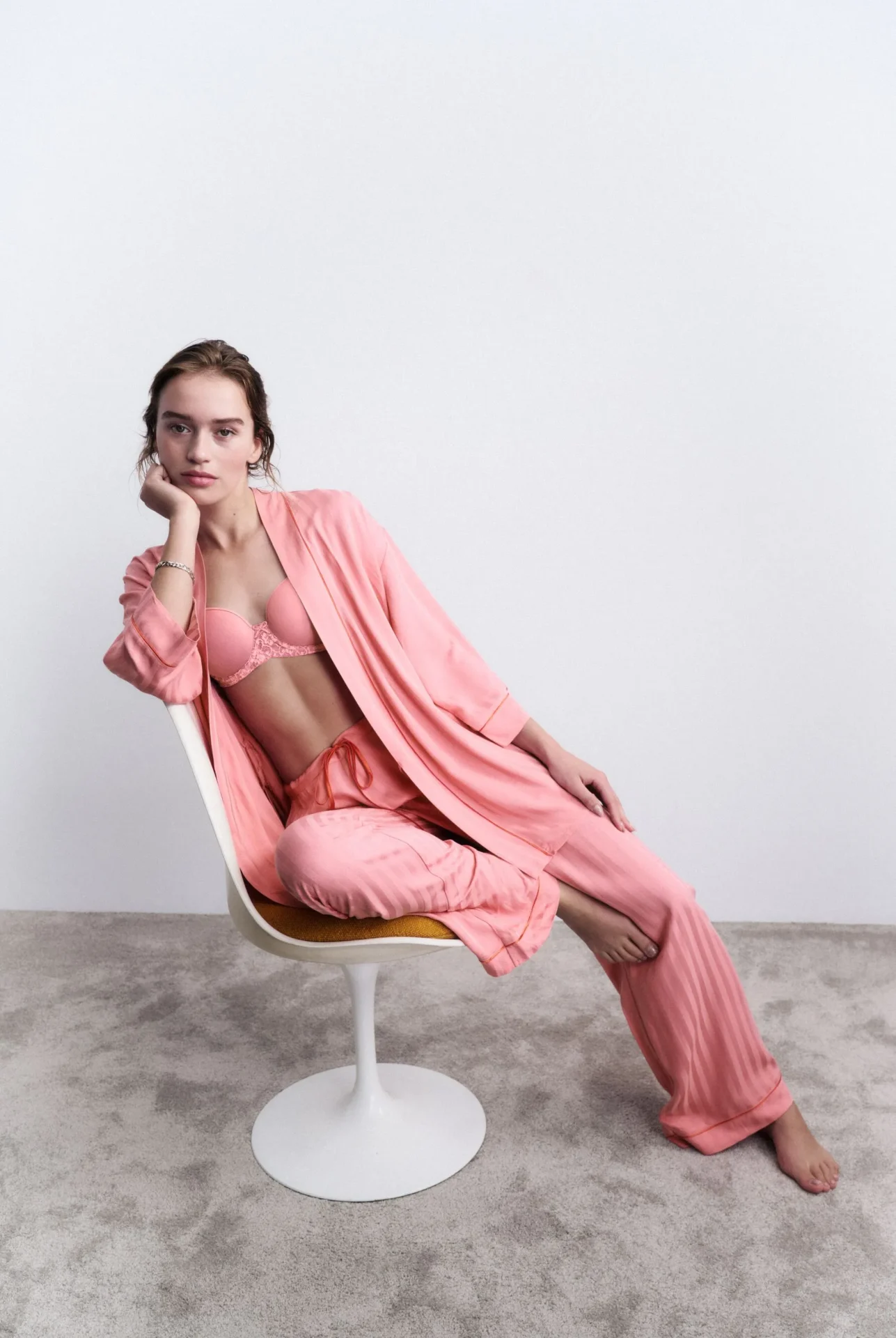 PRO TIP SHOPPINGOWY: Bielizna w nasyconym odcieniu różu (Wild Rose) nada stylizacji rockowego vibe’u. Biustonosz „zagra” doskonały duet z czarną ramoneską w stylu lat.80., a wystające paseczki stringów wyłaniające się spod jeansów dodadzą stylizacji pikanterii.