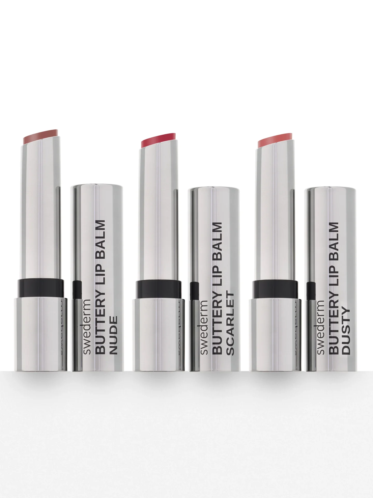 Linia Buttery Lip Balm to propozycja dla osób oczekujących efektu glossy lips połączonego z funkcją ochronnego opatrunku. Sercem tych masełek jest wegańska lanolina i fitosterole roślinne, które uszczelniają barierę hydrolipidową i chronią przed niekorzystnym wpływem środowiska.. Pod wpływem ciepła produkt zmienia się w lśniący, nielepiący film, który optycznie uwydatnia usta. Kolekcja obejmuje trzy odcienie: subtelną czerwień Scarlet, chłodny róż Dusty oraz naturalny brąz Nude, z których każdy zapewnia intensywne odżywienie dzięki obecności witaminy E.