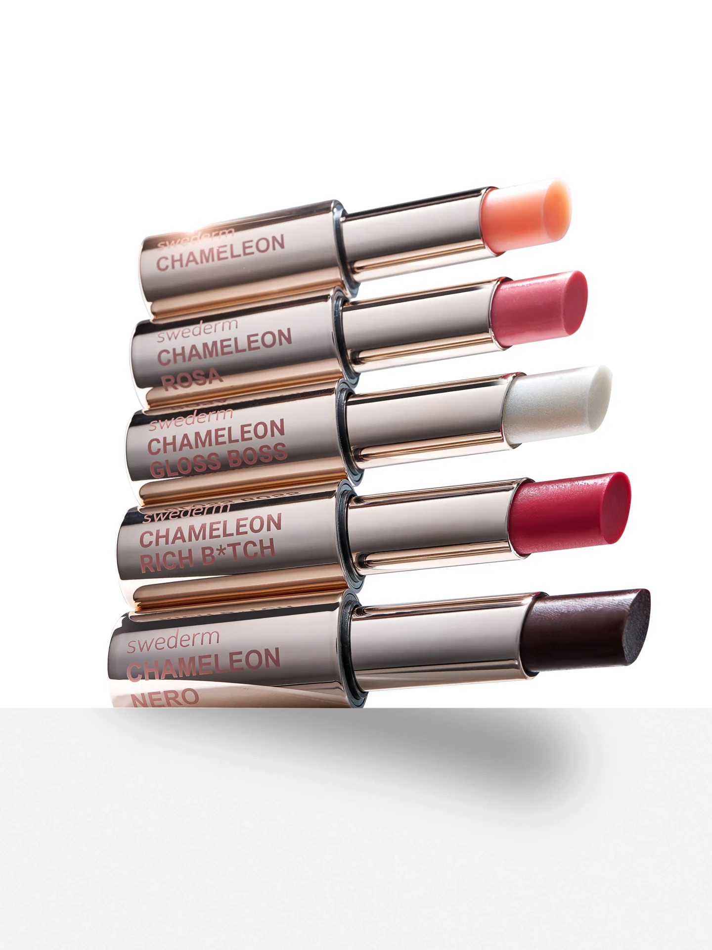Balsamy z serii Chameleon to kwintesencja połączenia makijażu z pielęgnacją.. Flagowy wariant reagujący z ph czerwieni wargowej pozwala na wydobycie indywidualnej barwy ust, podczas gdy pozostałe wersje – Gloss Boss, Rosa, Rich B*tch oraz Nero – oferują gotowe, zróżnicowane wykończenia kolorystyczne. Bogata zawartość masła shea, olejów z nasion bawełny i słonecznika oraz witamin A i E sprawia, że sztyfty te działają jak regenerujący kompres na spierzchnięty naskórek, zapewniając mu długotrwałą ochronę oraz zdrowy, świeży blask.